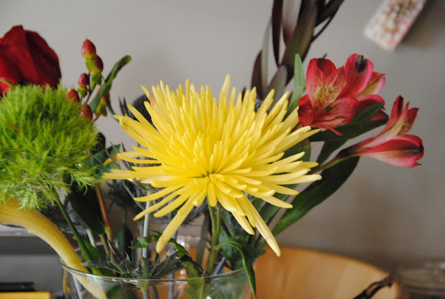 I have had a very lovely birthday! A sweet and far away package arrived from a dear friend. There was a little tweet bird she made, a handmade birthday card, and a really sweet vintage apron. Oh, I tried it on, but it is too precious for me to wear it everyday when I cook. The birthday cake was made by S, without any help from me. It was so nervous hearing all the sounds from upstair and try to figure out what she was trying to do; Oh, relax mom! That's the last sentence before I heard the oven sound beeping. It was a delicious cake! The icing is just sweet! Maybe had two cups of sugar instead of one? I might over dose the cake, since I was the one ate the most of it. yum!