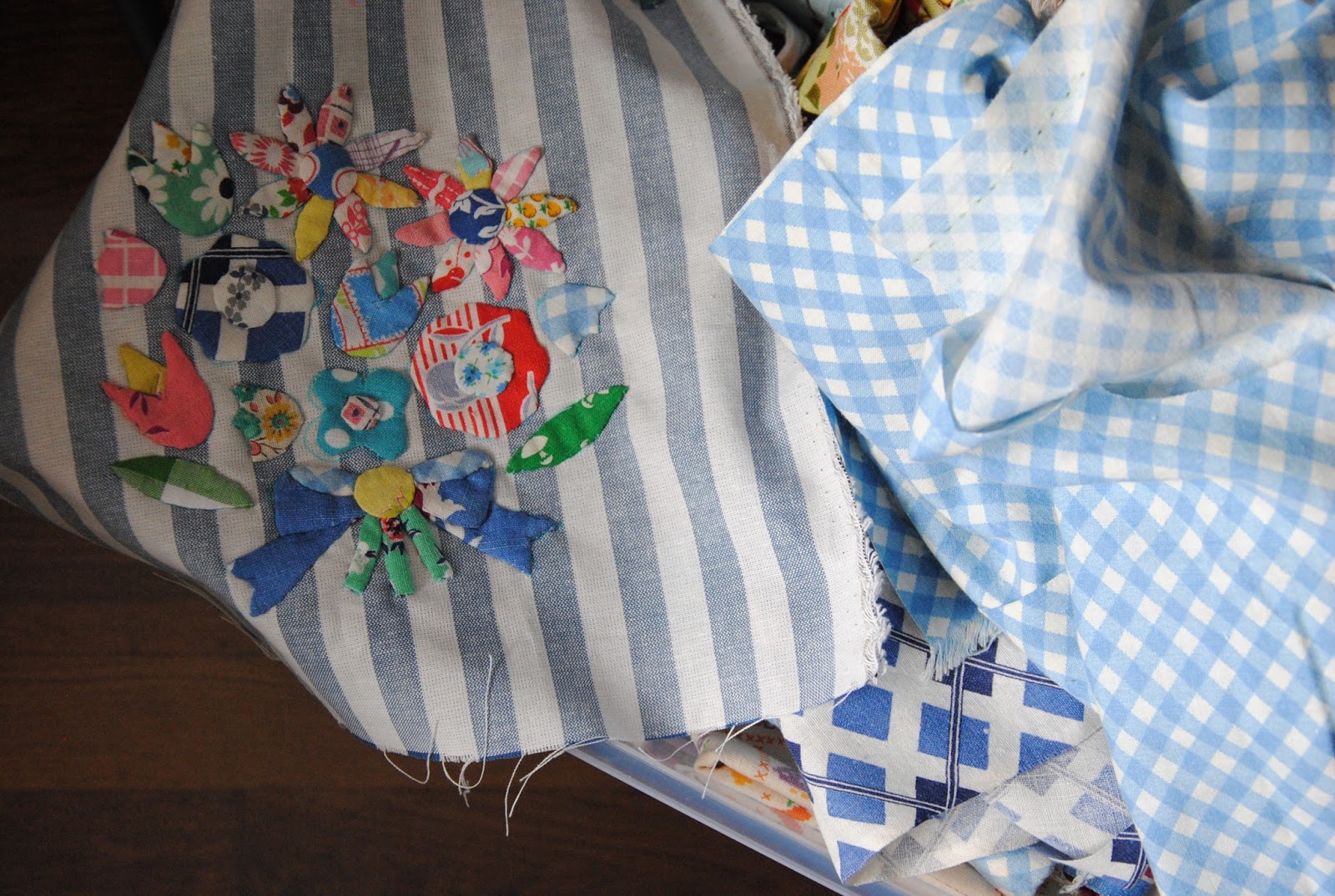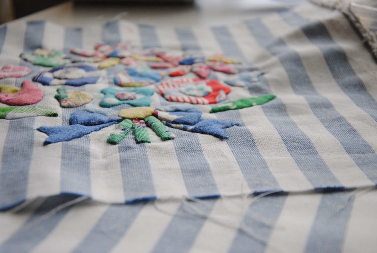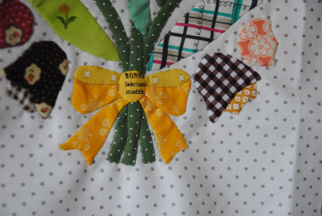 I have been really careful with my right hand since then and really would love it to feel better. I have slowly started a few hand appliqué projects this summer. It is quiet addict to cut all the little pieces and using needle turning every little points. I am so pleased with the little bear pouch. There are little pouches planned, but not started yet!