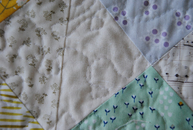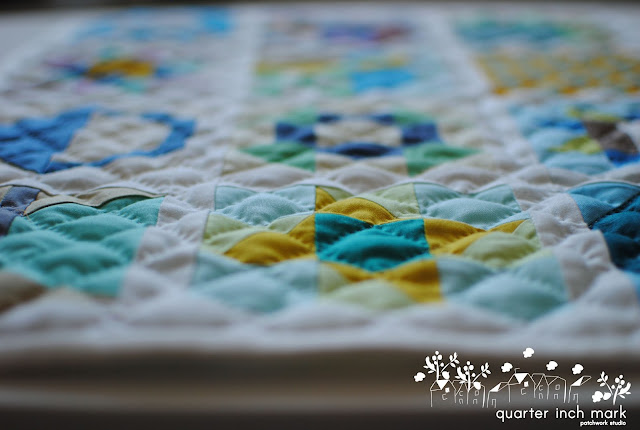 This quilt is quite different from other quilts that I made for her. It is a nice soft pastel combinations. Something soft, original, and fresh to speak! I've been thinking that in this upcoming time will be more noise in the change of learning new self and finding new paths of who she is.
