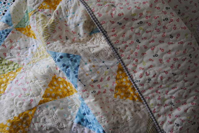 The binding is used gingham print that I've been using for a couple of quilts now. I really like the classic finish look quilt. You might not know, but I like my binding a little narrower, so I cut 2" wide for most of my quilt bindings.
