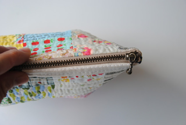 Remember that I had made another Travel Outbound bag for another dear friend, the one with brown and sweet button print in the front. Well, I also made one for myself used the vintage bias tape print , the one stuffed with sewing supplies, tools, pens, notepads, needle book. This is my newest sewing bag and love it so much!