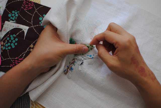 As I worked on the new appliqué piece, I took notes on the sewing tools and materials frequently being use. I though I'd write two separate posts about the hand-applique (or maybe narrow down to one). Would it be good idea to give some pros and cons on the tools I use? Does any of you like hand appliqués?