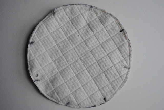 Now, Turn your quilted base piece upside down. Put your round shape template on top of it. Use your black sharpie and trace  around the round shape.
