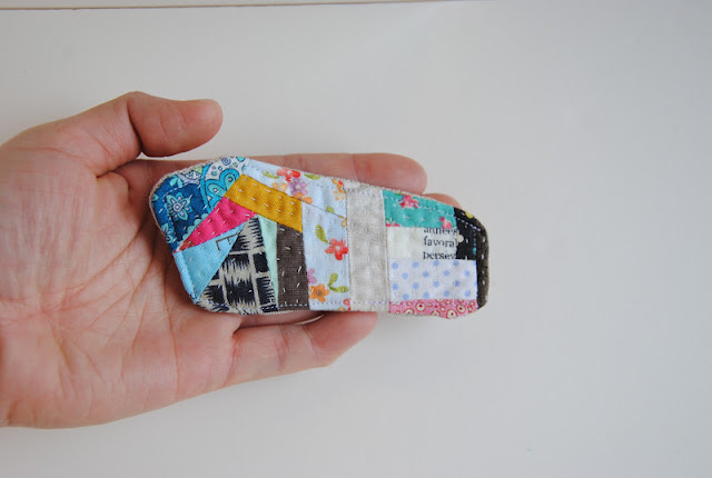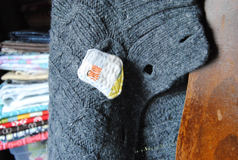 I made two for myself and pin them on my sweater and scarf! YES, I am an addictive scrap patchwork sewer and I love to sew! Tiny scraps are equal value to my yardage fabric! I love these {patchwork pins}.