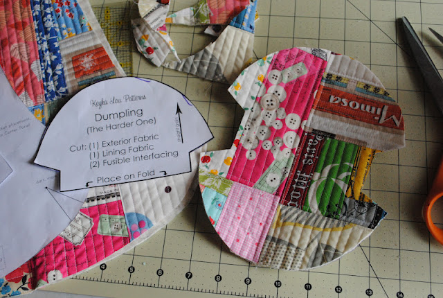 As I cut off the pattern pieces. I realized I wasted some of good patchwork pieces then I rejoined the small pieces and made them into small version of {dumplings}. I am up for 10 of dumplings now and more will be cut from the patchwork pieces later. I think I've gone far this time! However, I do love all the pieces that I put together and would be so sad to set them in the trash bowl and disposed them later on.