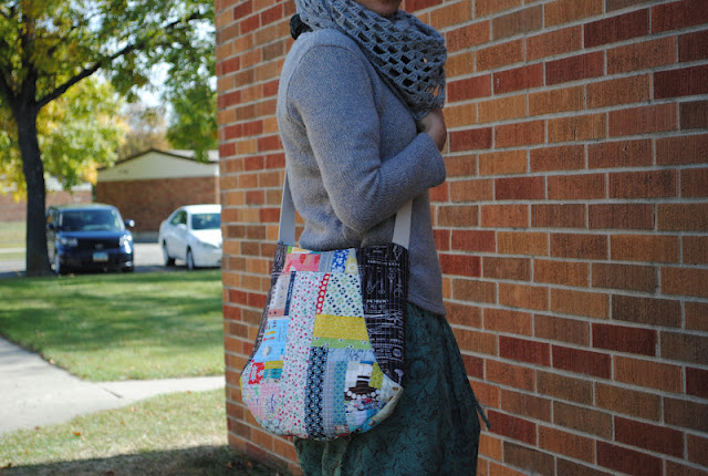 Last night, I stayed up late {again} and traced the {241 tote Pattern} on the patchwork pieces that I have been slowly patching. Boy, I made more/ bigger than I needed! Originally, I planned to make make entire {241 tote} with patchwork pieces, but I changed my mind as I cut down the pattern and matching pieces together. The patchwork pieces didn't stand out as I hope. I wanted something bold and almost retro/ modern.