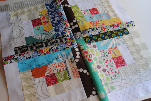 These six log cabin blocks didn't make it to the quilt. Not even the backing and I kept it aside. I set them with my kitchen sink quilt blocks together, but decided to pull four blocks out this morning.