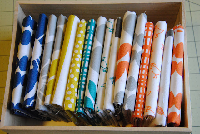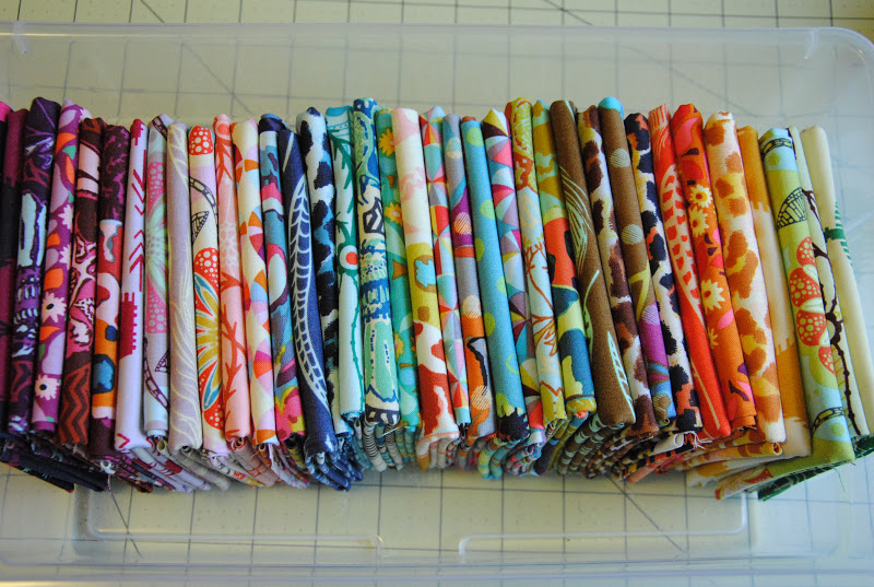Finally a fat quarter bundle of {field study} and {bella} was in order and arrived. I wasn't sure about them until many lovely projects have been show and tell on flickr and blogs. These are very pretty! Soft texture on filed study and bold colors on bella. The second Swoon quilt will be in action soon! It is a quilt for my mom who turned 60 early this year. I think she will love the colors and prints in field study. Bella would be great to coordinate with paper piecing projects that I have been working on lately.