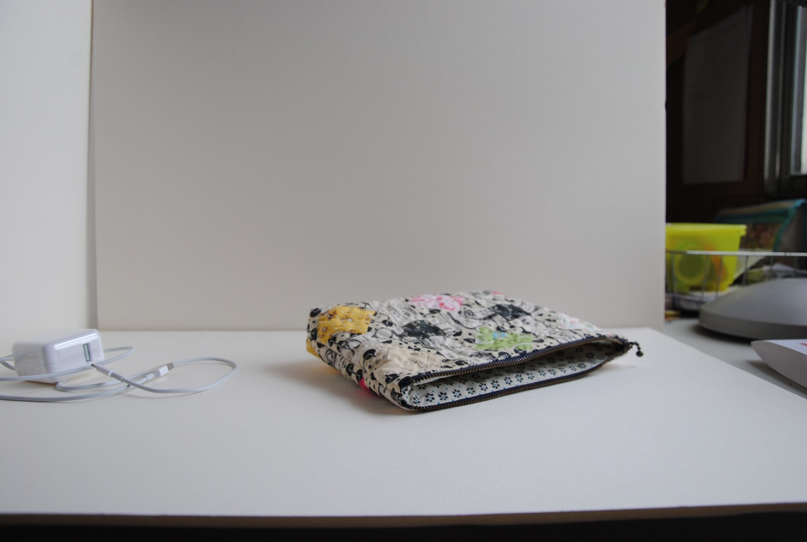 Both patchwork pieces were hand-quilted. When I was hand-quilting these, I left out some other sewing project, so there are few packages still isn't completed to send out at this moment. I felt eager to finish the patchwork folder and the zippered pouch, so I can take it with me when school starts. The laptop can stay home and my backpack will be lighter.