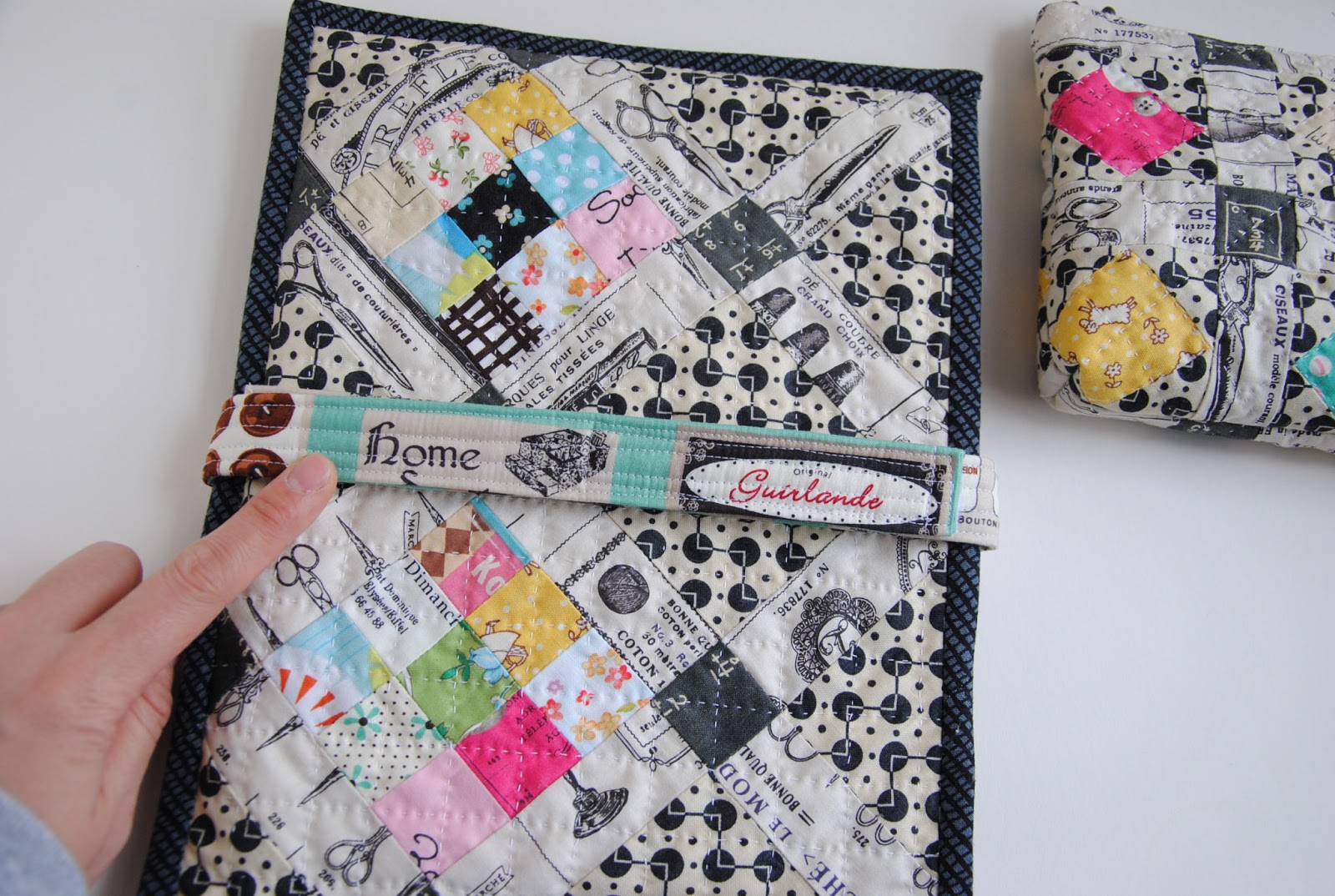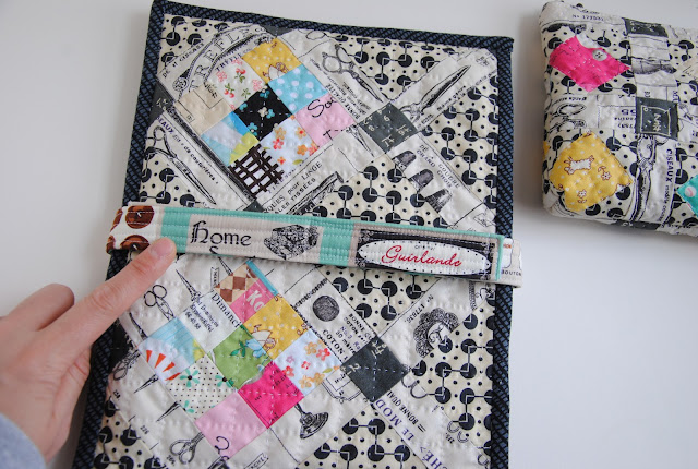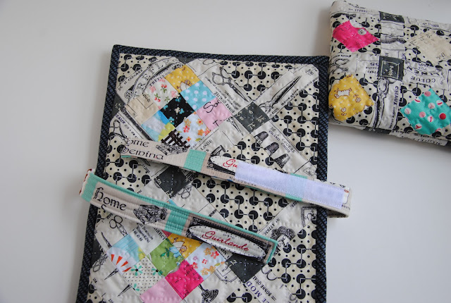 The belt! The patchwork folder was finished over the weekend and I take it with me from room to room, but knowing something is missing. It feels like something needs to be added in order to secure the folder. So I measured around the folder and make a belt for it. Sewn Velcro for the nice closure.