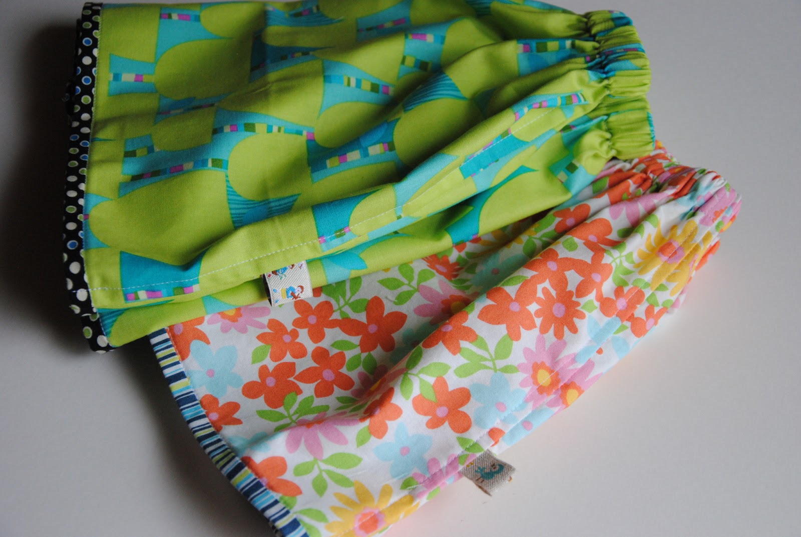 Our internet server won't be back up till the end of the week, so I try to get emails done before leave the studio here. Baby Elise turned one-year-old last Friday. She is very healthy and fun to be around! As I was focus on sewing S' quilt last week. I didn't make the time to make anything till last night. I made two spring skirts for Elise. They might be a little longer, but I think she will be walking by summer time.