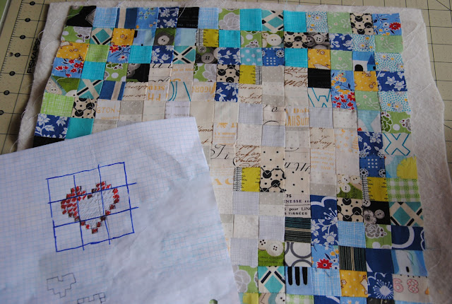 I haven't decided on the backing fabric and having hesitations on how to finish this mini heart piecing. It might be another mini quilt as far as I have in mind. Also adding little embroidery might be lovely. All the pieces are cut in 1.5"x1.5" and finished at 1"x1" and this is a great scrap project!