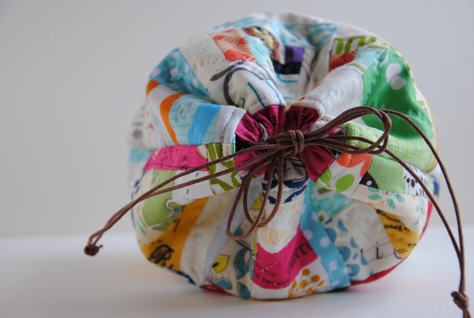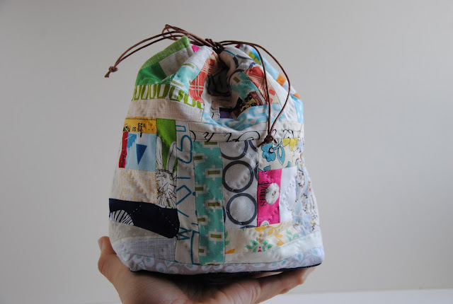 {Thank you so much} for the sweet comments on the {soft and sweet girls}. I surely have enjoy the process of making them. The best part is seeing the mama and baby lambie came alive with lovely French knots. In the series of drawstring bag making there is a scrappy patchwork edition that finished last week, but haven't get the chance to share with you.