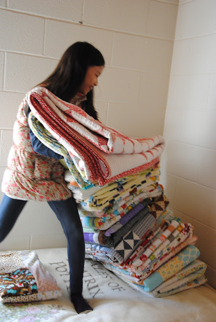So amazing to see so many quilts in a pile. I love how they look folded and stacked, there is something very cozy about the view.