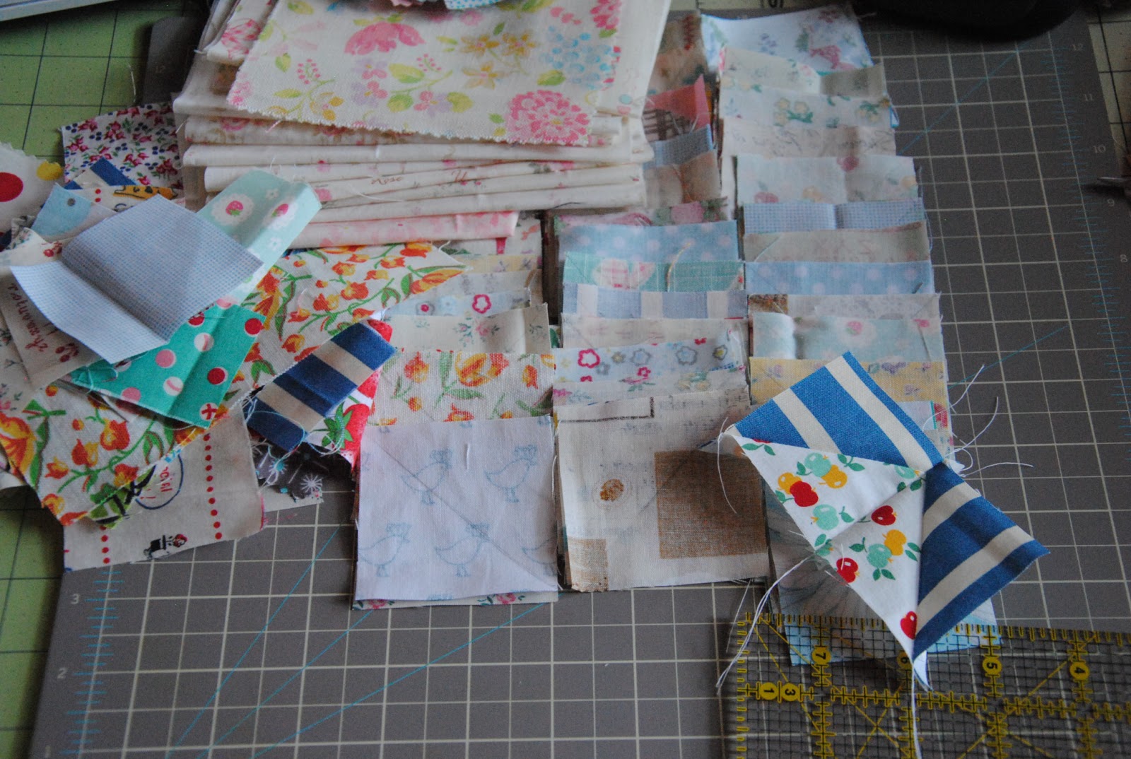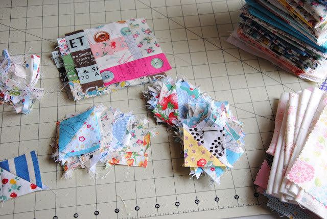 Right now, it feels so rewarding to watch snow falling, drink tea { today is raspberry tea; sweet}, and clunk the sewing machine with new project I have had in mind for so long. I can't recall when was the last time I play with half-triangles. It seems like very long time ago. Now, I have all the time to sew and play and pack! I plan on making a bag and hope to have everything piece and ready to quilt soon! New projects are exciting! Of course a little scraps playing..