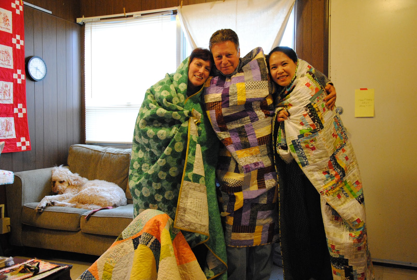 ReplyDeleteChase, you look so happy! The pics are really nice: you, Stella and your friends and your quilts :) Enjoy your new energy! :)