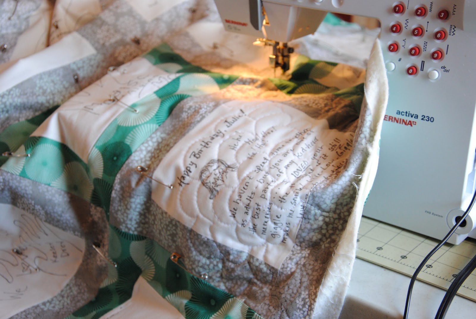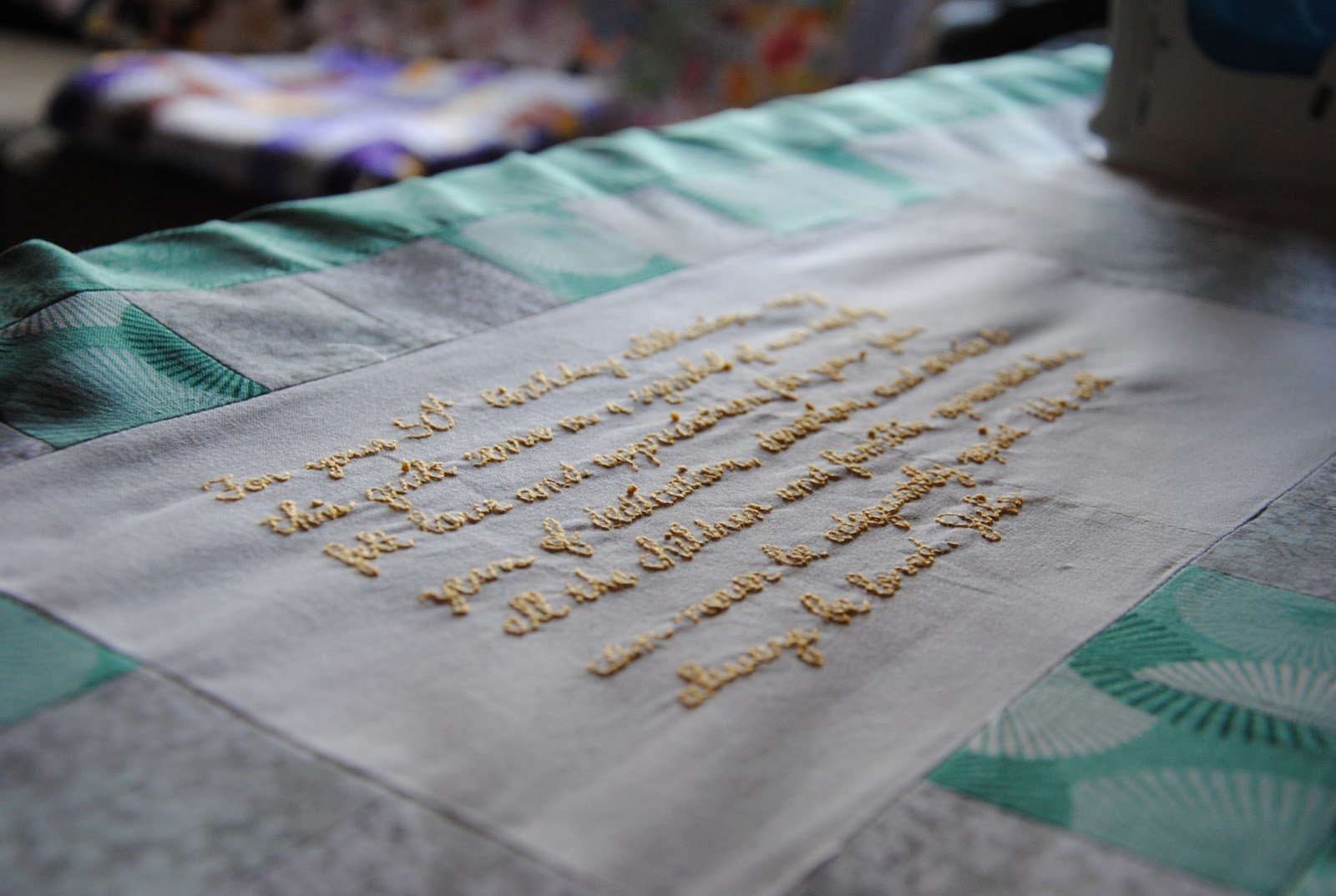 DeleteBeautiful quilts as always Chase. I especially love the one for Julie with all of the text. Really lovely.