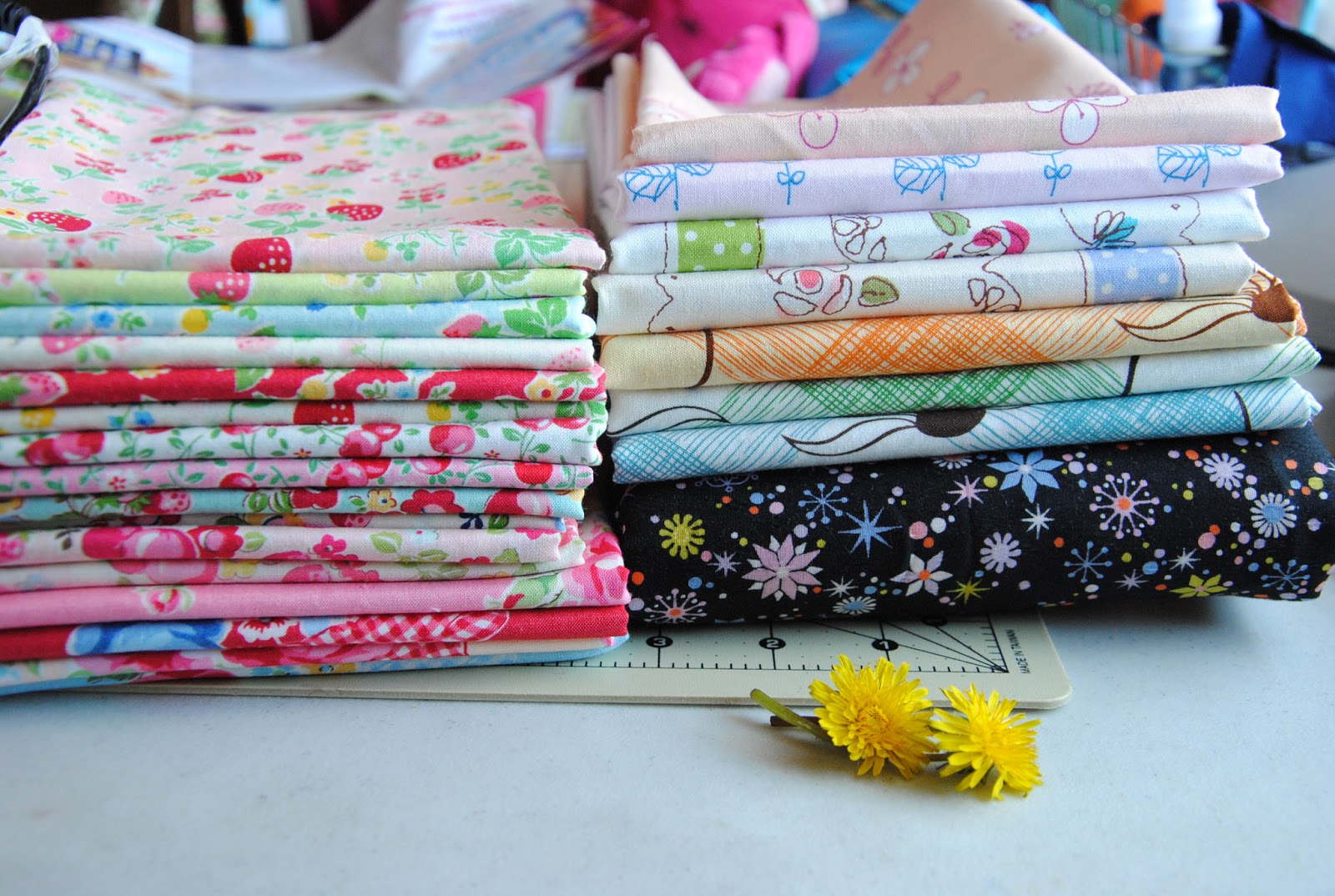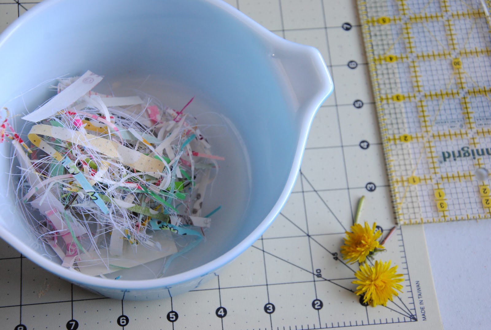 S spotted dandelions this morning and got me some. They are sitting by me as I work. Last night, we cuddled in the single girl quilt as I bound off the quilt. It was lovely to sit so close and just talk { we have been cheering for this time that mama is listening and giving full attention to S}. We