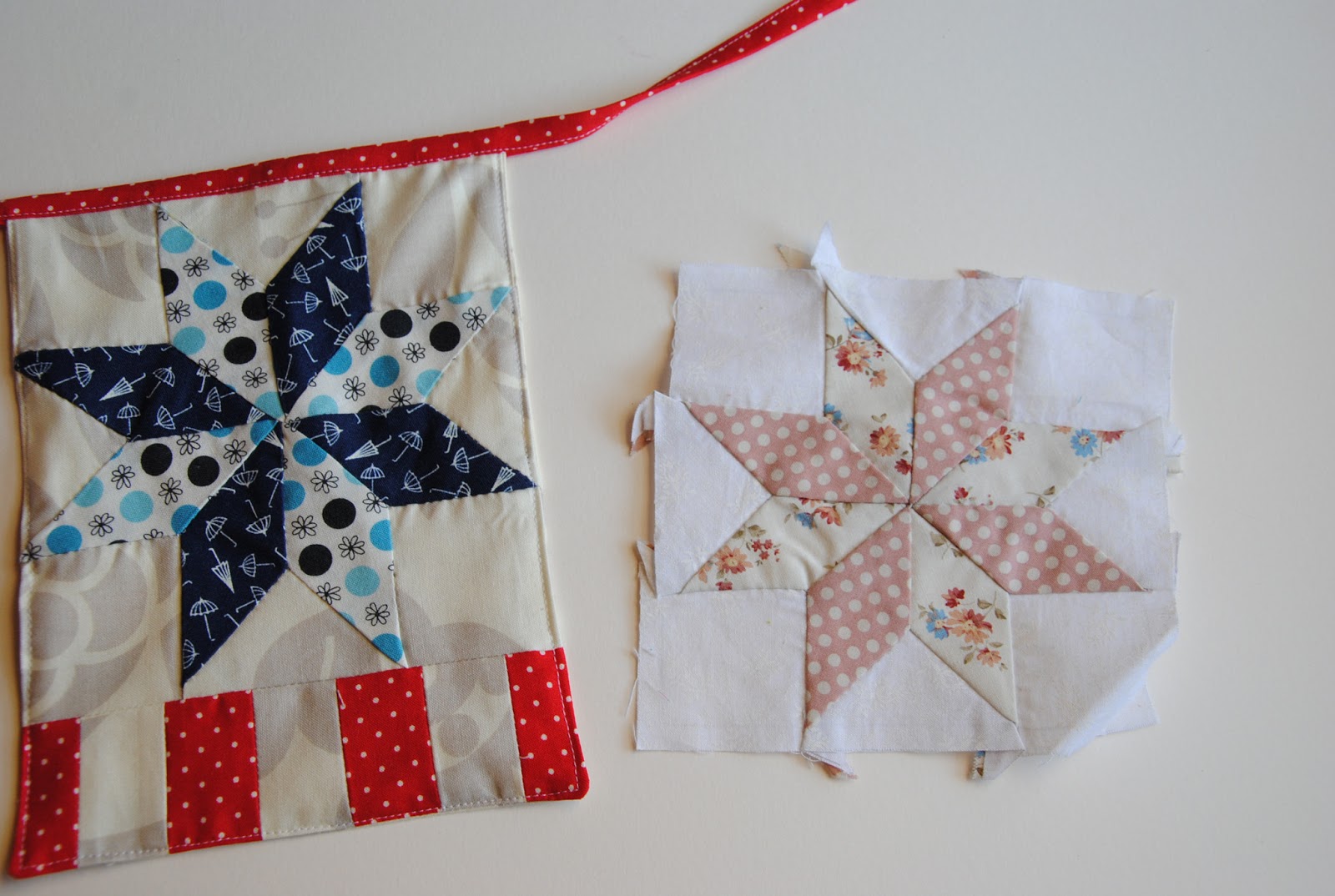 While packing away the sewing room, I found so many old projects that were tucked away. The small 8-point star block with paper templates were zipped in a small zippered bag and also found the very first mini quilt that I made with the same pattern back in 2005.
