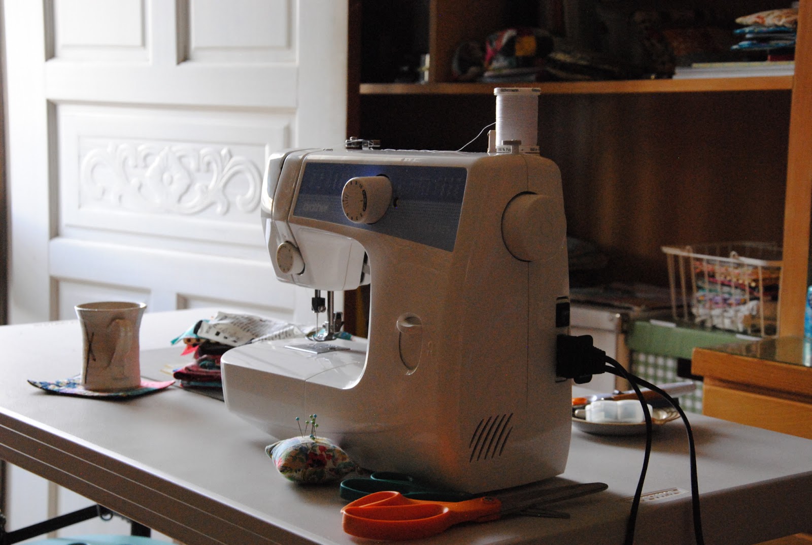 When the door bell rang at noon. I quickly ran downstairs and was happily welcome my new friend. Yes, she is here! Quickly we opened the box and went through each parts, manual book, and whine the bobbin then give it a go! It is a really simple machine with the basic functions I need. It will not allow to sew a large quilt, but small projects. I. am. so. happy.!