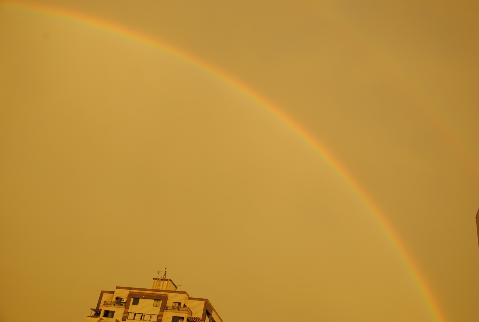 It has been hot and humid days here! We supposed to have some rain beginning of the week, but it didn't happen until tonight. We had thunders and few shower. Aww.. the temperature cool off in a sudden. The double rainbows show up before the rain. The sky was clear and red.