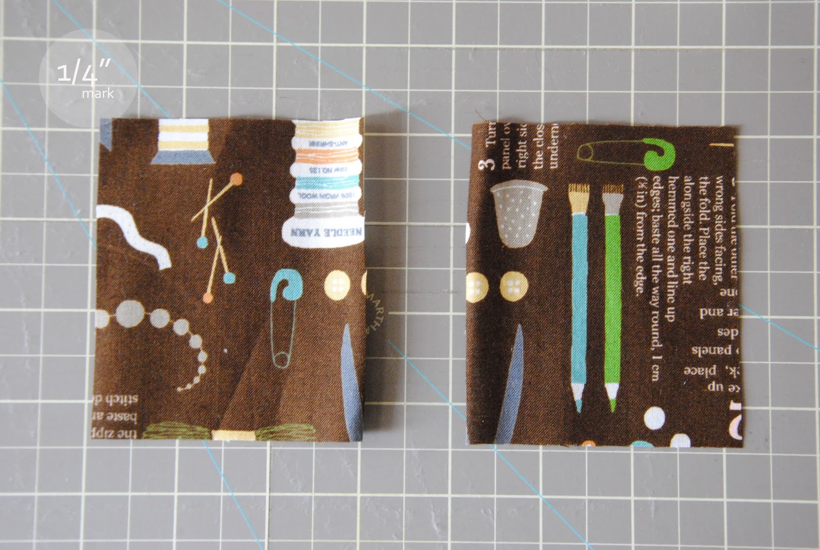 21.  Cut 2 pieces of 3.5"x3" { Exterior sides fabric}