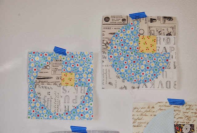 clear instruction on each block cuts/ assembling. The blocks that I made is from page 228; Tulips. I love the sweet design of the tulip. It is simple and elegant; the organic shape of it reminds me the tulips that I used to seen around spring time in NYC. I reused the opposite cut outs and made the smaller one, so I can save the fabric cuts. More of this pattern will be made soon. I plan on size down the tulip block measurement and make smaller blocks for a mini quilt. It is hard just make a few blocks...