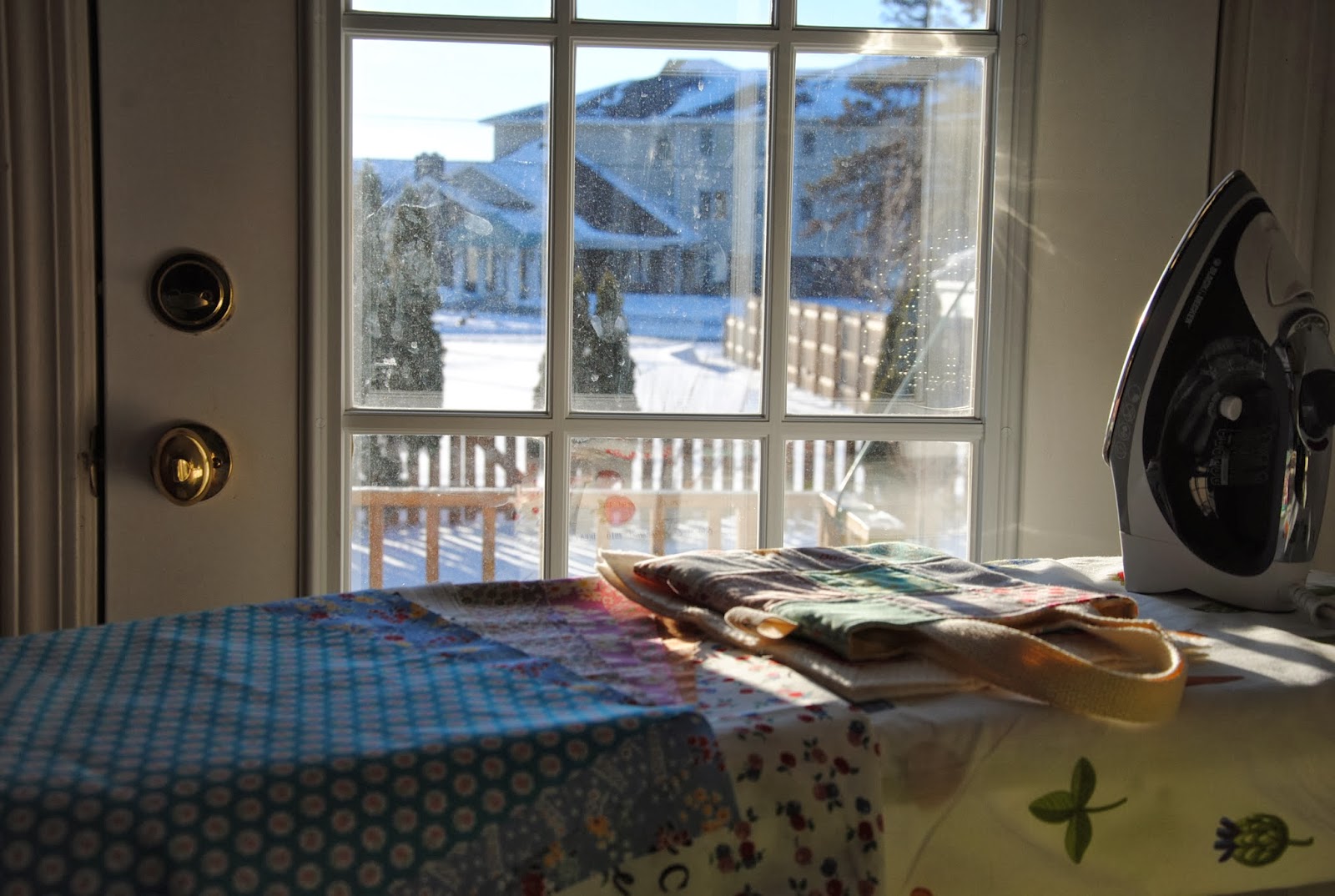After talked about the ironing board and iron in the basement from the {last post}. Guess, it never occur to me to bring them upstair! I tried to be aware the space that I have spare myself out here. Yesterday morning, I brought them up and ...... it made everything six times better and no more need to dress in outdoor layers indoor. I hope you are not smiling, but giggling.