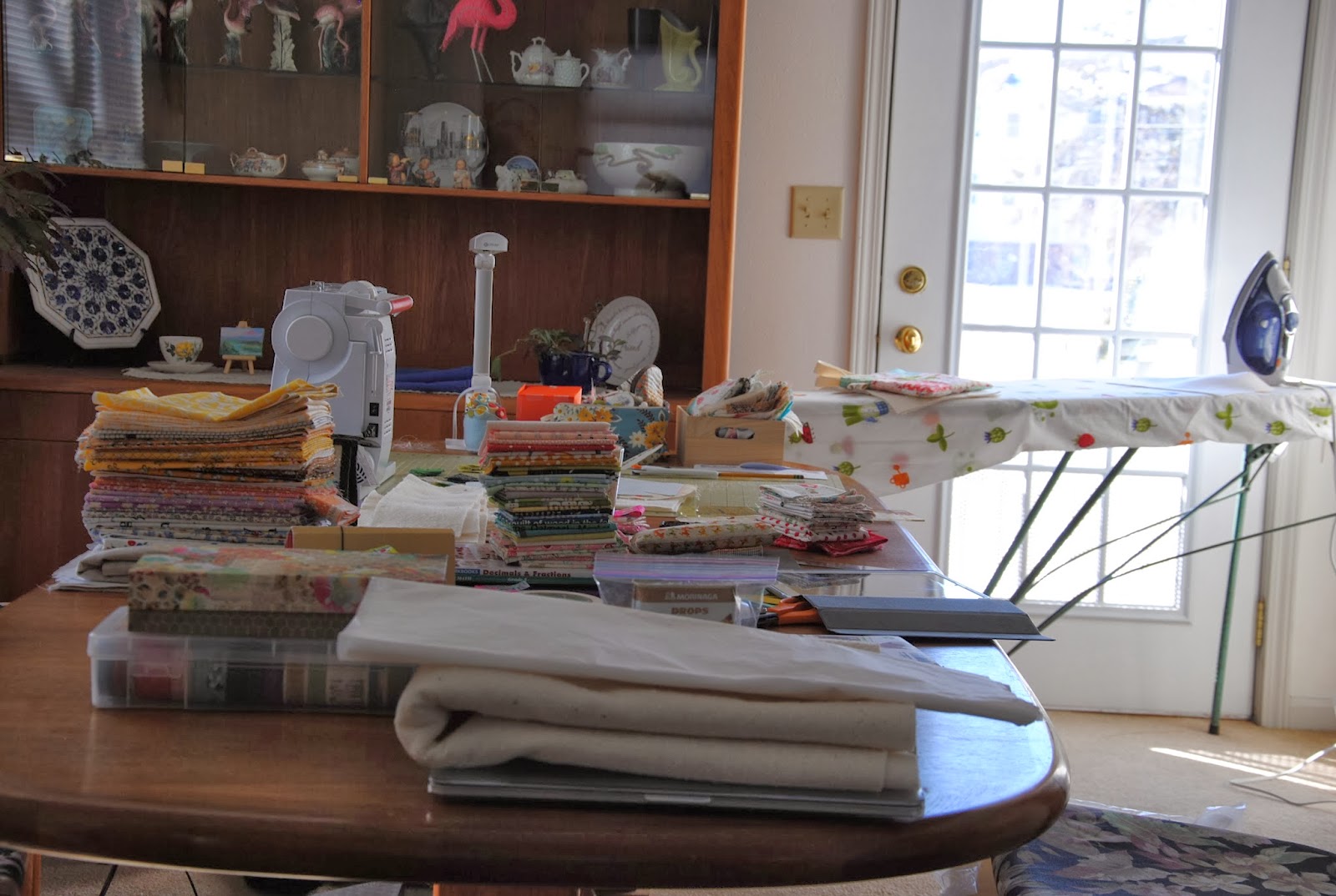 Early this week, S, aka {quarter inch mark studio assistant} returned to studio after her good day at school. She asked if I have made the improvement? I was so happy to tell her, yes! Check it out!! Isn't it clean and neat around here? Then she looked at me, "Really, mama! I can't even find a space for homework". A day later, before she walked in the house, she asked again, " How's the work today? Did you really improve?" I said, " yes, tried my best". She checked out the space, and said, " well, BETTER, and thank you! And now, it is pretty clutter here again, but I still have a few hours before pick things up!