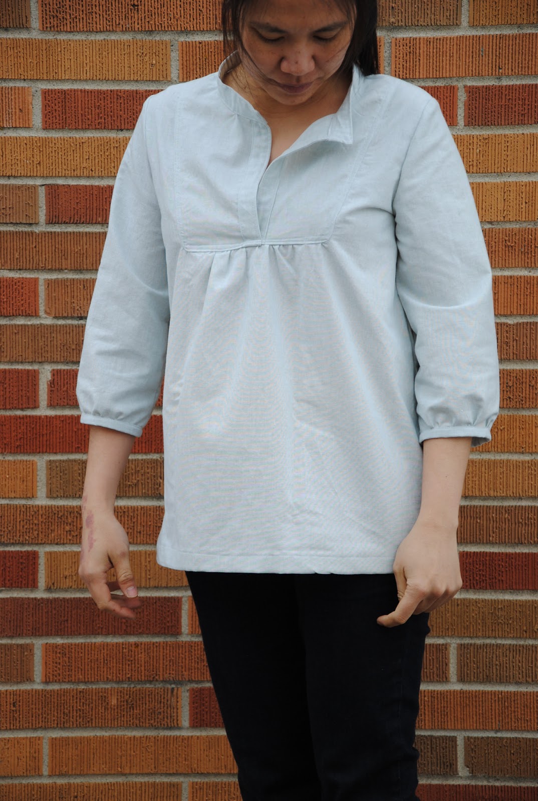 Another {Tova top} is finished! It is made with {this print} and very comfortable in wear and it matches S' Tova top. For this Tova top, the sleeves cuffs were not added, so that leave much room in the elbow area.