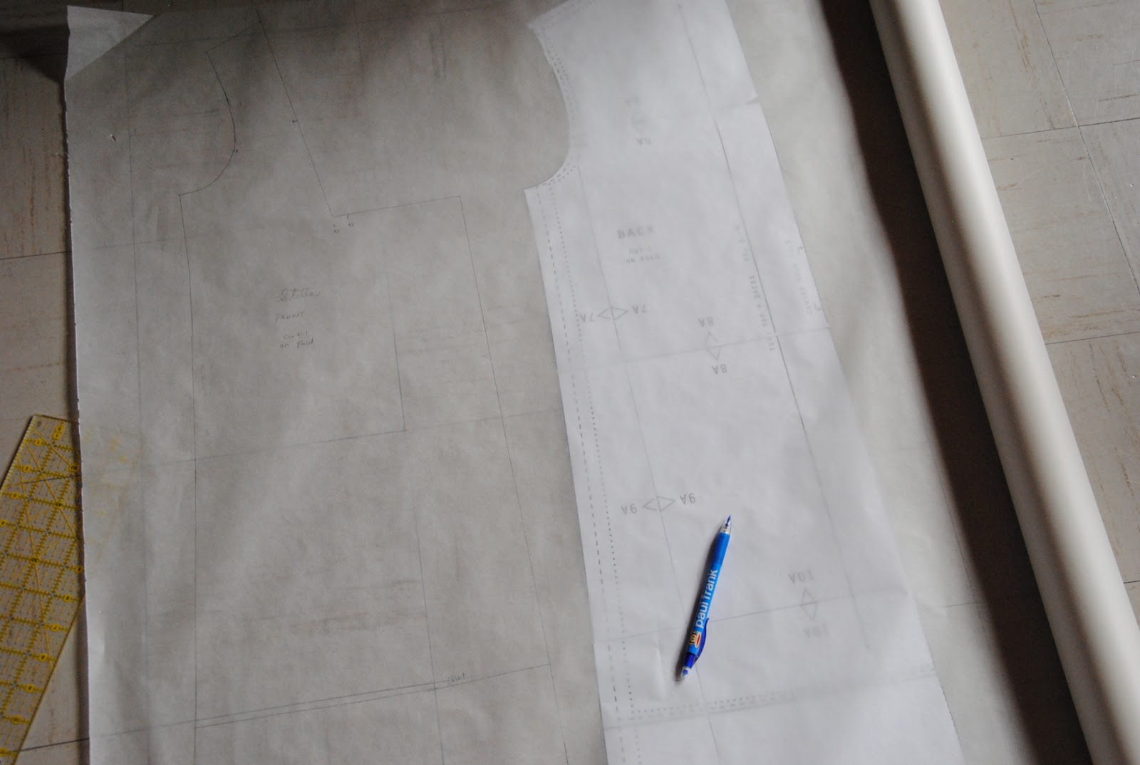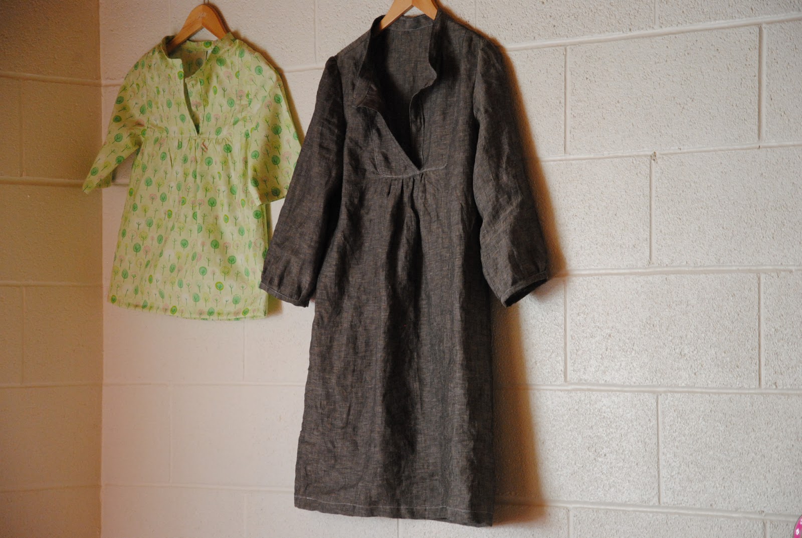 For S' tova top: Armholes are most challenging in alter patterns from adult wear to kid wear. I have always having hard time whenever I try to re-size the pattern. For the new Tova top, I raised the armholes by 1.5" higher and that made so much comfortable for S to lift her arms. The top length is longer, so S can simple wear her summer leggings and have a little time to grow out of this outfit.