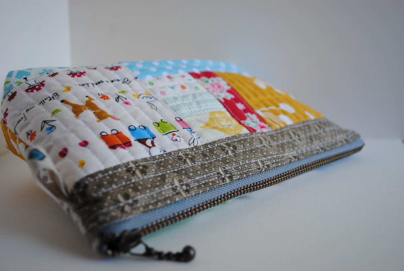 {Kerry} sent the package way back in March when I was about to have my citizenship interview. S and I careful open the package together. When she saw her name in the card she was overly happy~ { You all know how to make a child happy}! Kerry made her a little pencil case. The pattern can be found in her and Penny's {sew-ichigo}. S just loves her little pencil case! She is bring it with her in her new bag that's almost ready. We saved the chocolate for the Easter Sunday.. um.. It was so good! The vintage fabrics are always so sweet~ I have been using some of them into projects lately. It would be so great to make a quilt { this quilt} from all the vintage fabrics that I have been collected! The little tea pot mini quilt is SO lovely made! We hope to hang it with our other mini quilts together. {Thank you, Kerry}