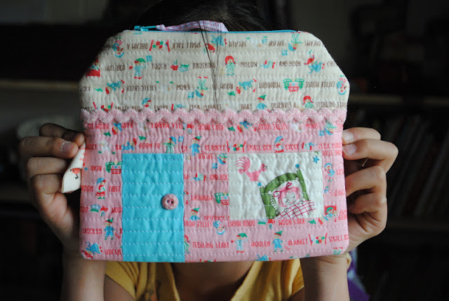 Super cute pouch!!  S loves it more than anything! She loves the little sleeping girl  print. Just perfectly made and perfectly for a little 3rd grader!