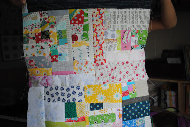 Lots fun prints and super small scraps! Some of these pieces were smaller than 1", but I enjoy the small uneven cuts. I sew about every scraps together!