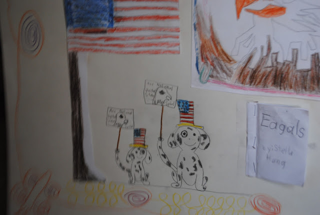 This is S' drawing from today! I still need to go to studio and  take photo of the other picture.  She is not completely done with this picture! She was giggling when I was taking this picture. The big puppy named Lily and the little puppy named Lucky! I though you might enjoy her drawing of the day!
