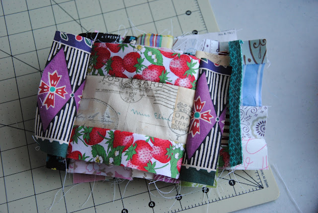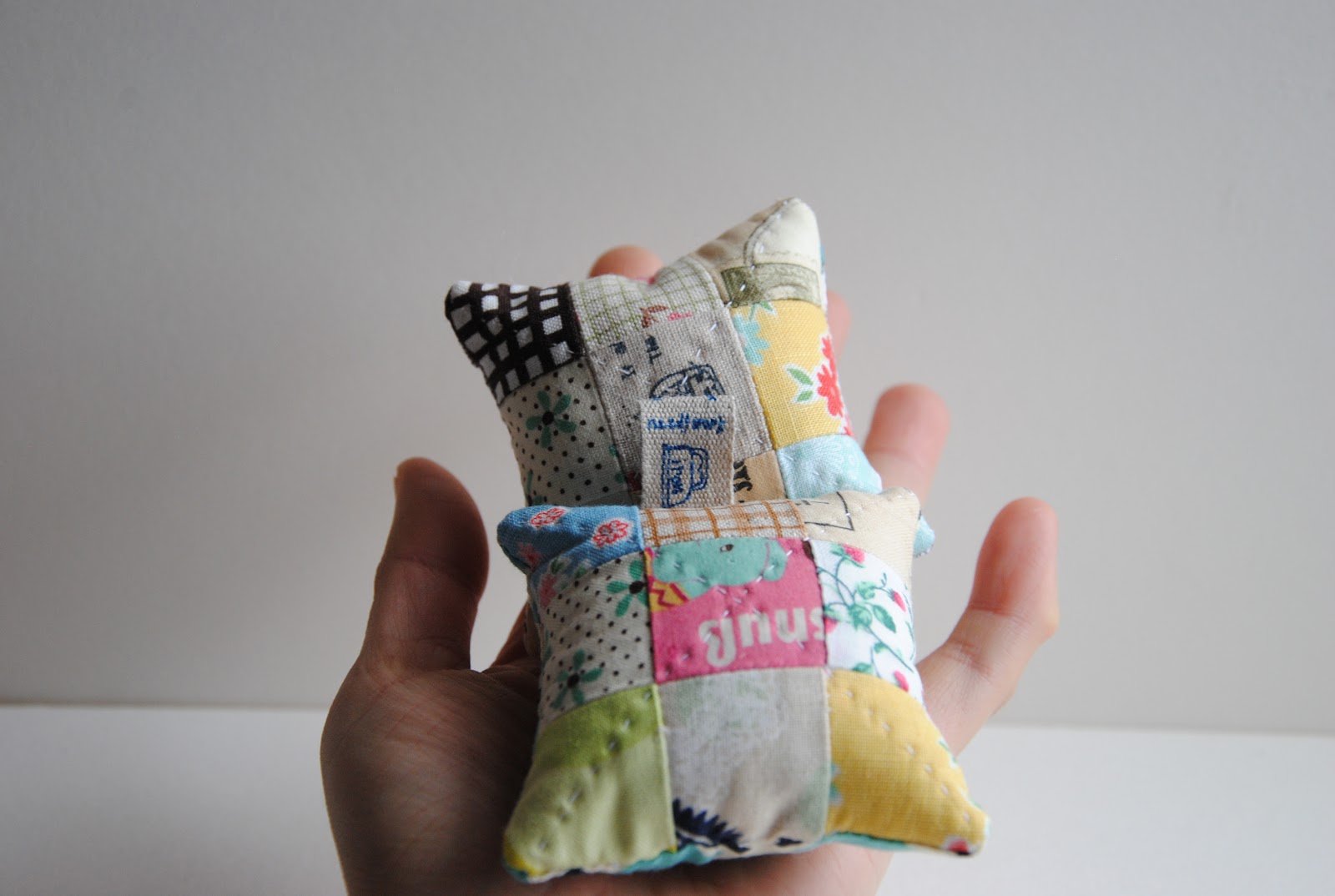 While I was finishing up the movie last night.  I made another two mini pin cushions to go with the gifts that I made for my friends. They are actually from the scraps of the zippered pouch that I made last night.  Simple hand-quilting added a personal touch to the pinny.