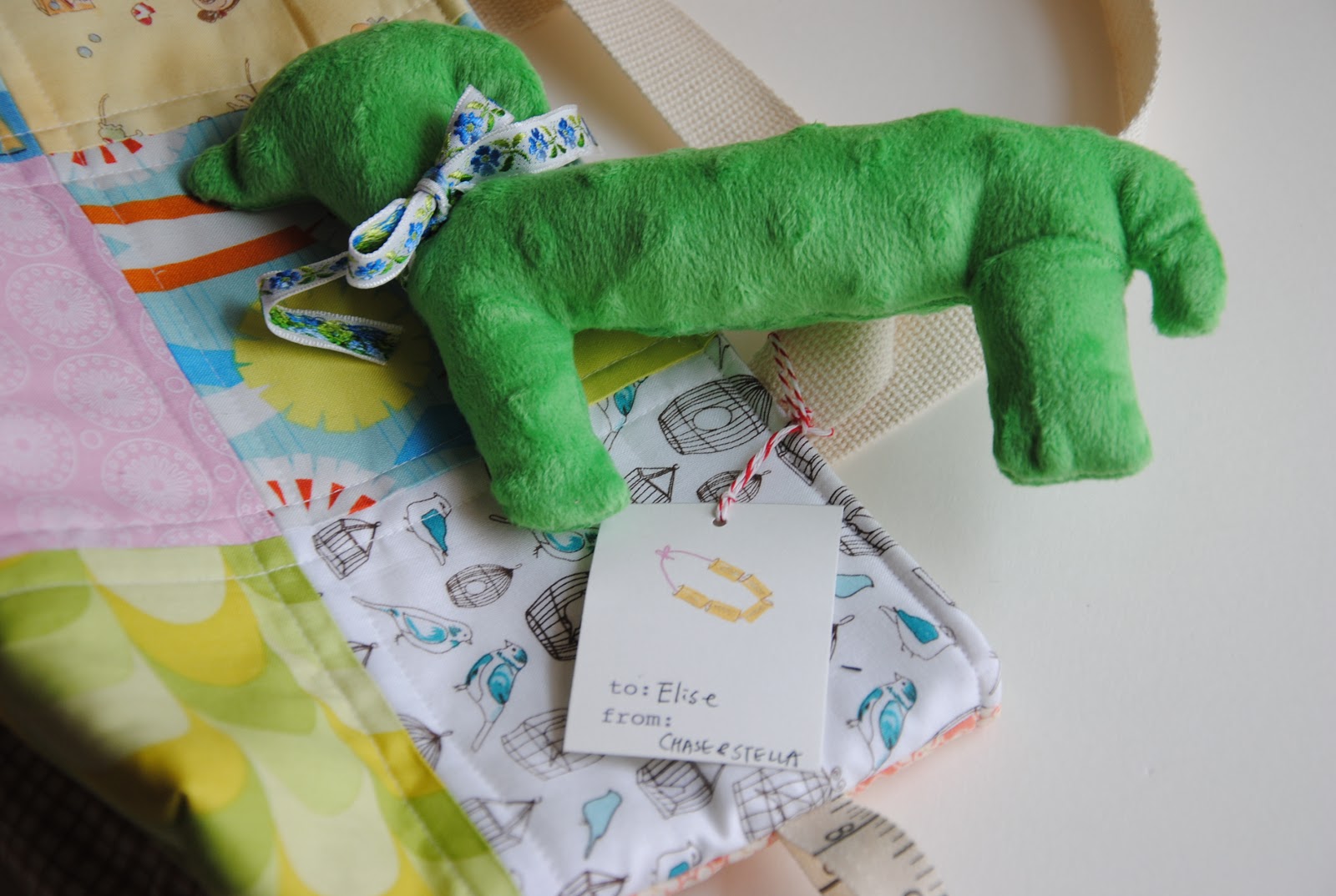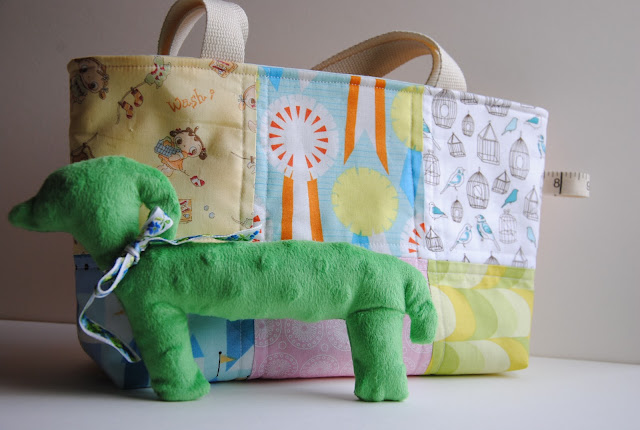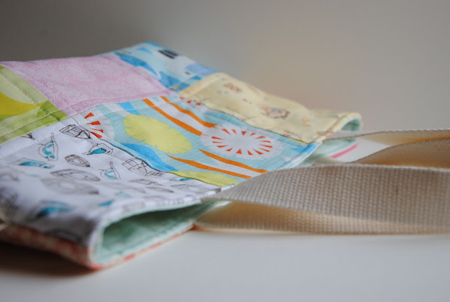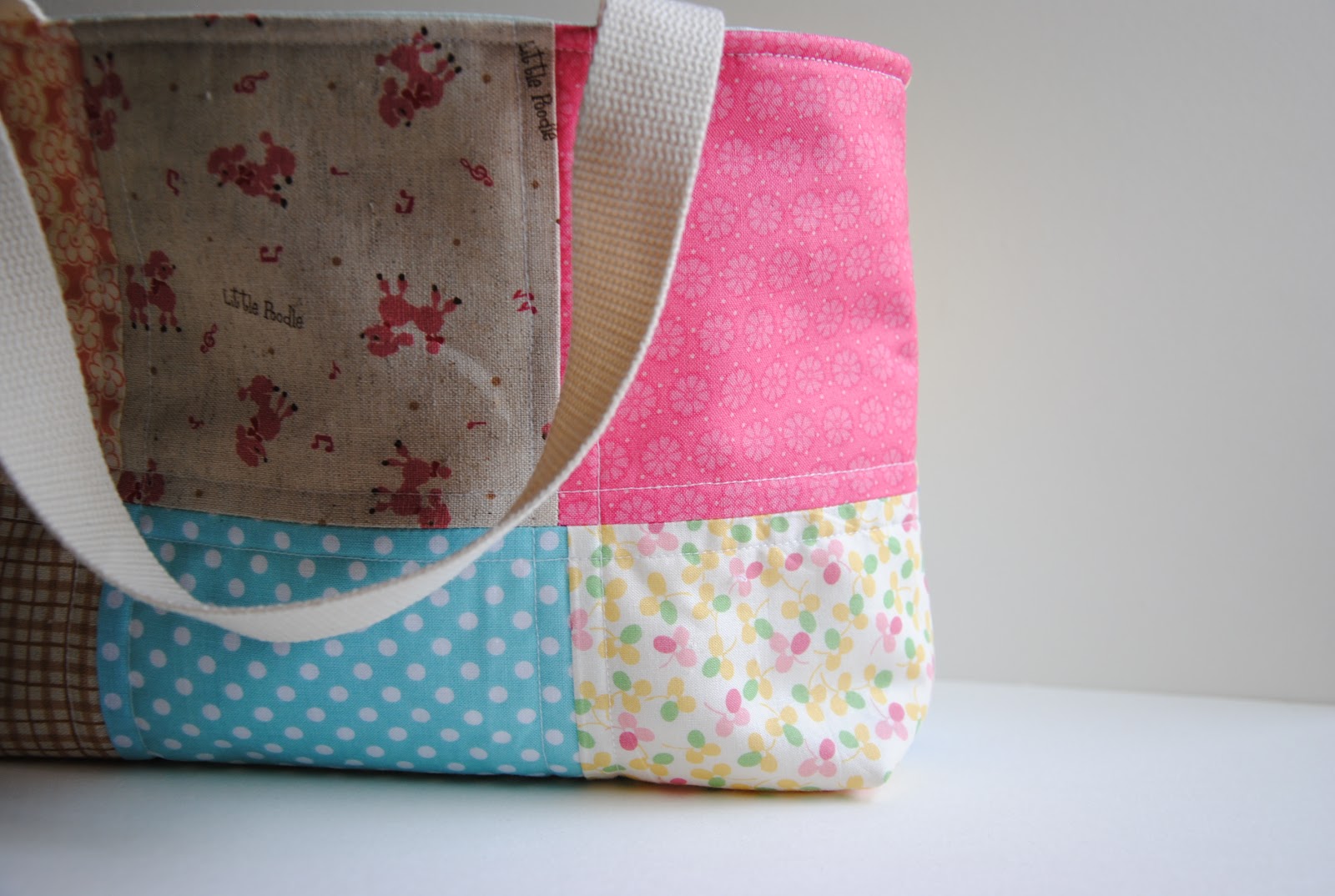 Kim and I were planning to have coffee after our finals, but she is leaving tomorrow morning to her parents house for the holiday. That means, {sew, sew, sew, as fast as I can}. This baby tote isn't hard to put together. I try to pick up some novelty prints for Elise, so she can have fun with it.
