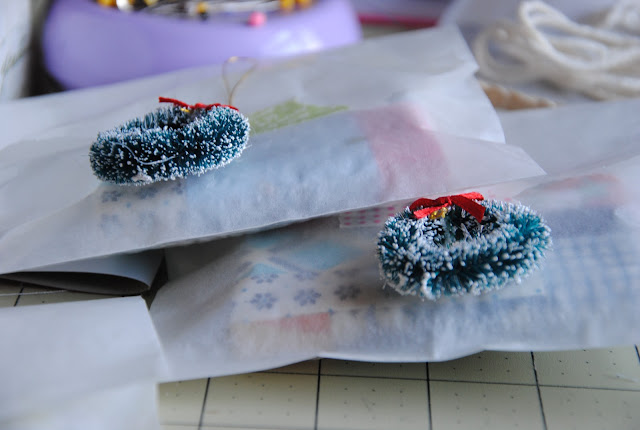 All the cookies have been packed and maybe a few kinds of cookies will be added to the box before send them away. I found packing cookies is hard. It seems like the plastic container is the way to go/ seal the cookies before they arrive the receiver's hands.  It might be a little late for this year, but I'd like to sew up a few recycle gift bags for next year.
