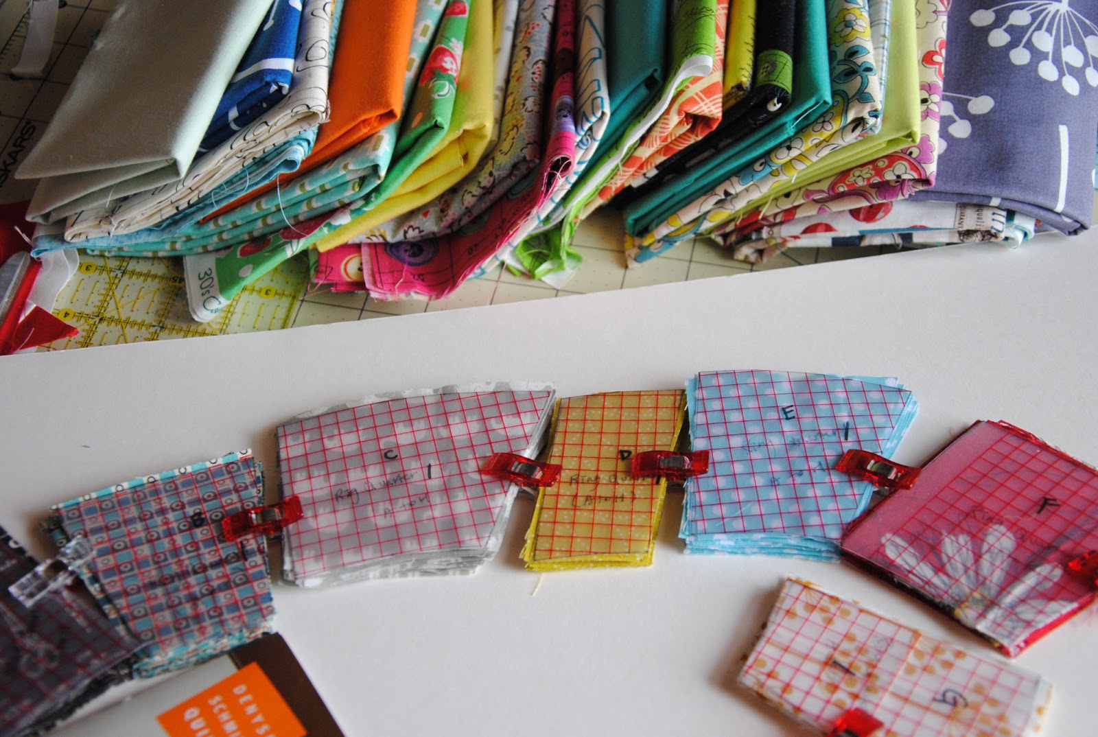 S had an overnight flu last Friday and was up throwing and feeling stomach pain so hard, so she stayed home and fell back to sleep for the entire morning.While she was resting, I pull out all my fabric boxes and start pulling prints for {Single Girl Quilt}. All the templates are cut, but I haven't cut the fabric, since I am still rearrange the prints/ colors. It will be a so fun quilt to make! Lots curves!
