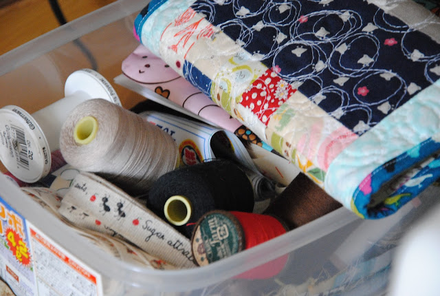 Many small projects keep me going and my dear aunt just brought me all the last photos fabric to play with. My aunt makes lovely handbags for herself. It is so sweet of her sharing her stash with me. I can't decided what to make, maybe a quick market tote for me and bottle tote for S to bring to school.